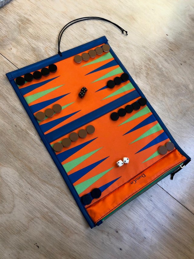 Leather and printed silk backgammon board
